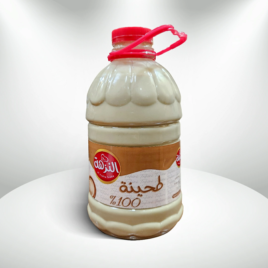 طحينة النزهة… نكهة أصيلة ومنتج طبيعي 100%. مصنوعة من أجود حبوب السمسم المحمّص بعناية، لتمنحك طعماً غنياً وقواماً ناعماً مثالياً للمأكولات الشرقية. خالية تماماً من الأصبغة والمواد المضافة.